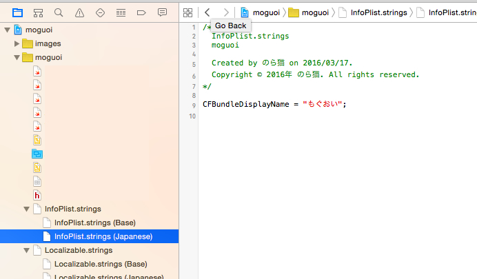 ※画像は既に日本語のアプリ名用の InfoPlist 作成済みです。