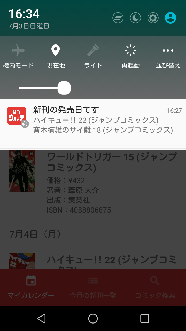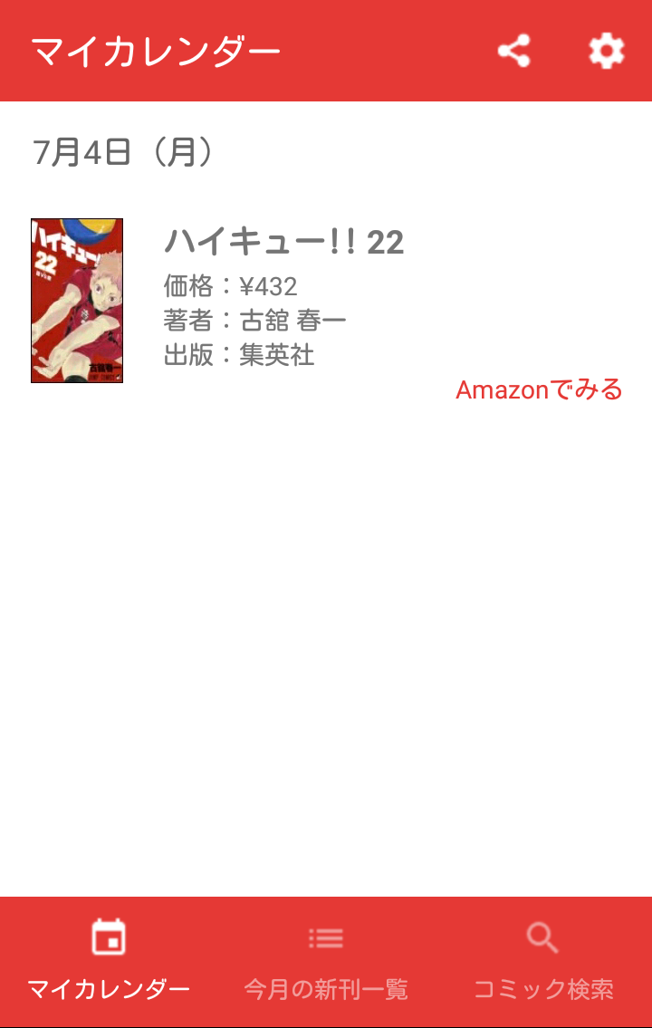 マイカレンダーに登録した新刊コミックの発売日に通知してくれます。