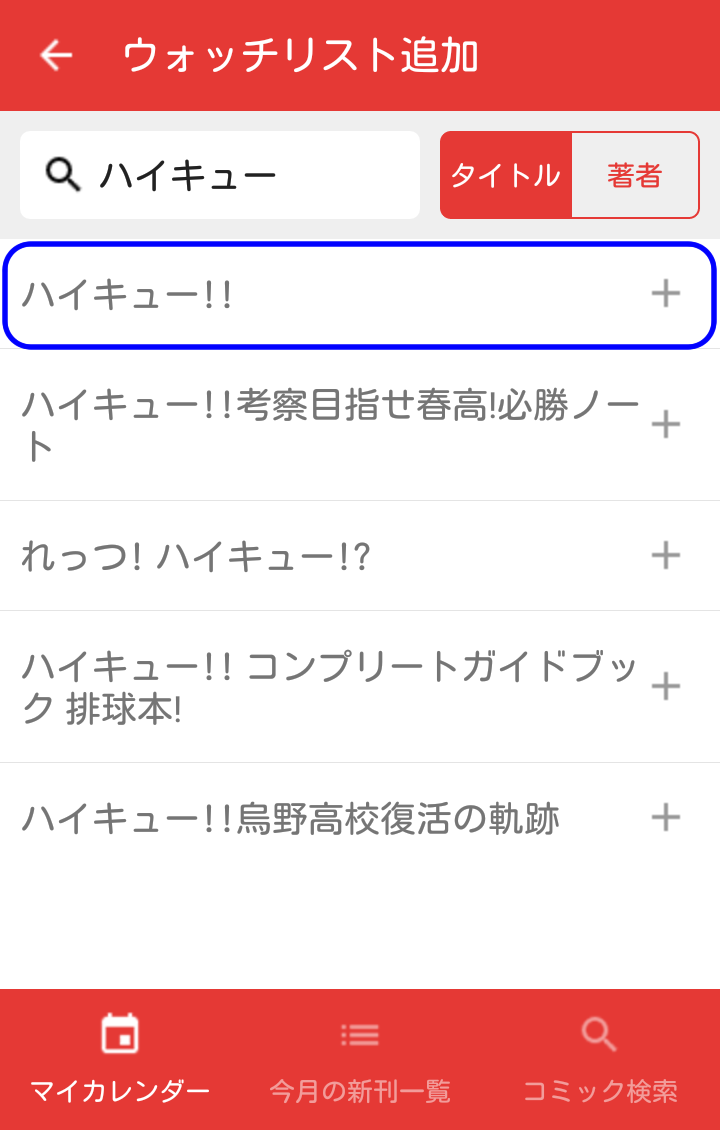 次に、検索結果から追加したいタイトル・著者名をタップします。