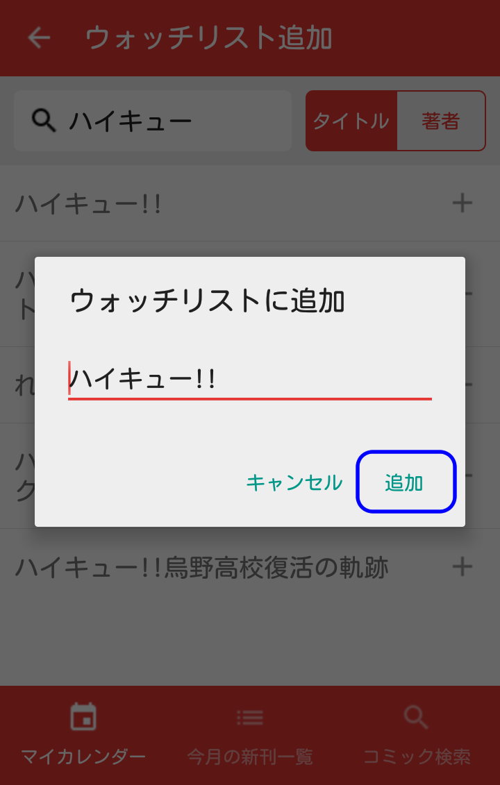 ※著者名を追加したい場合、「著者」のボタンをタップして検索してください。